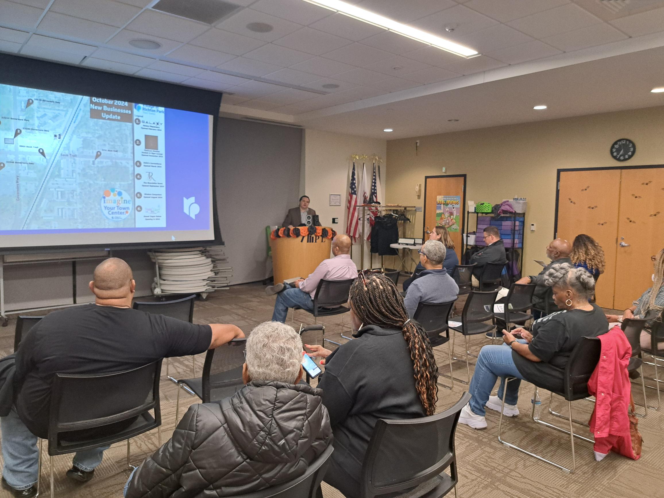 On October 24, 2024, the Village of Richton Park held a community meeting at the Public Library to detail progress made on the Town Center Plan, including the brownfield grant activities. Village officials and Fehr Graham personnel lead presentations and answered questions from community members regarding the progress and future plans of the Town Center Plan.